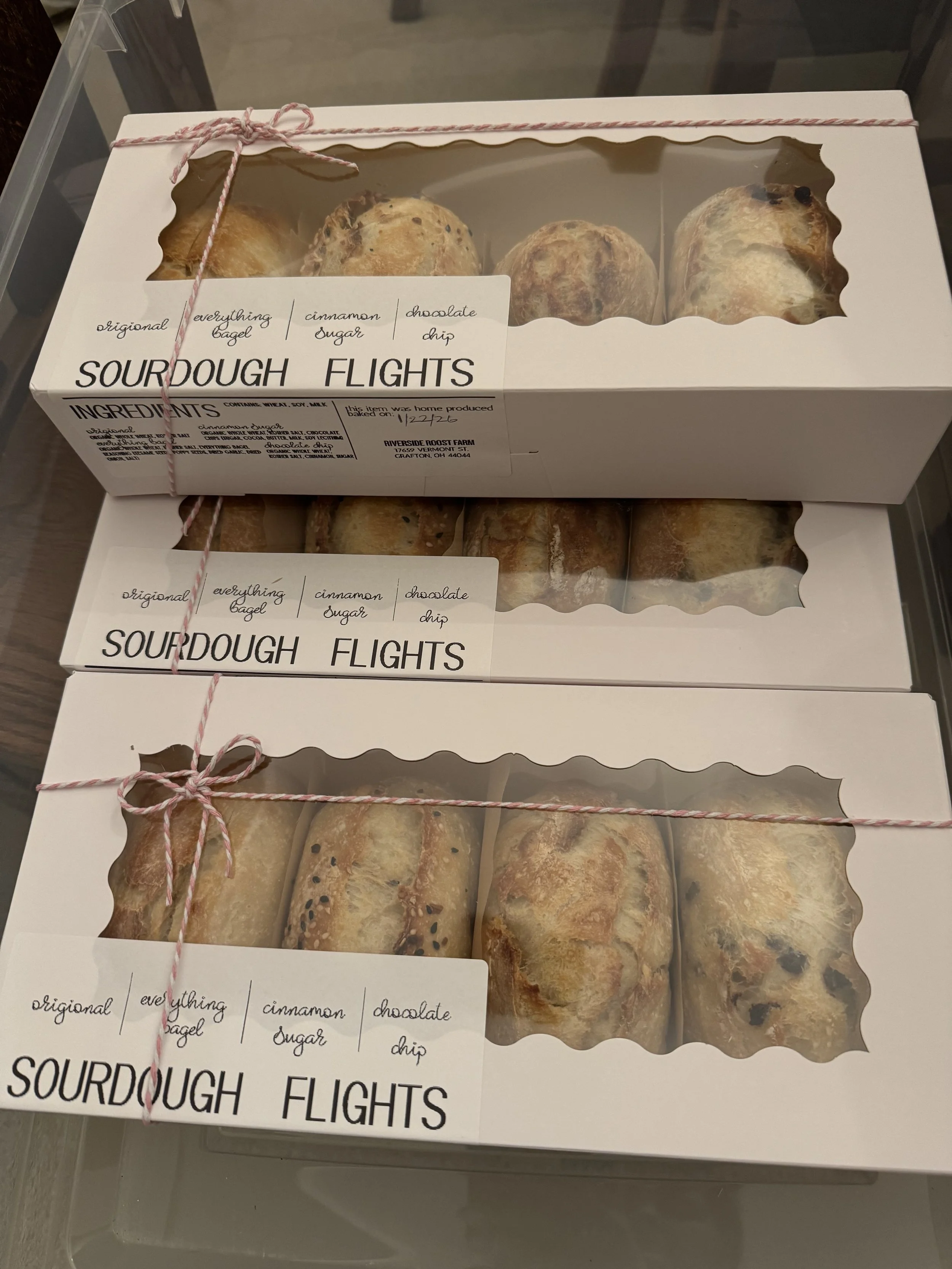 4pk mini sourdoughs (reg, everything bagel, strawberry & cream, and choc chip)
